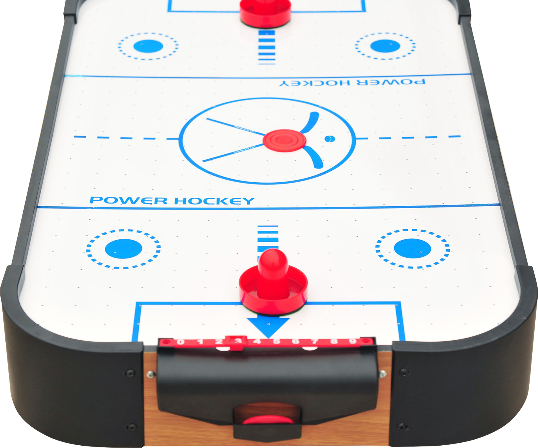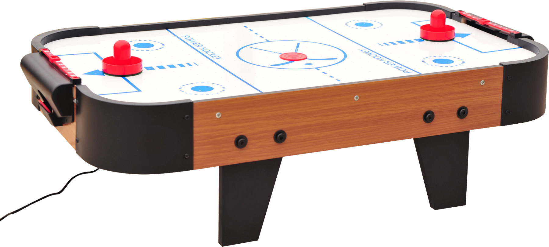 Ce jeu de air hockey est idéal pour être posé sur une table et peut se transporter partout. Il est alimenté en électricité par la prise et l´air arrive sur la surface de jeu par des orifices. Ainsi, les palets filent sur la surface lisse et on commence à compter les points. Connexion 220-240V.