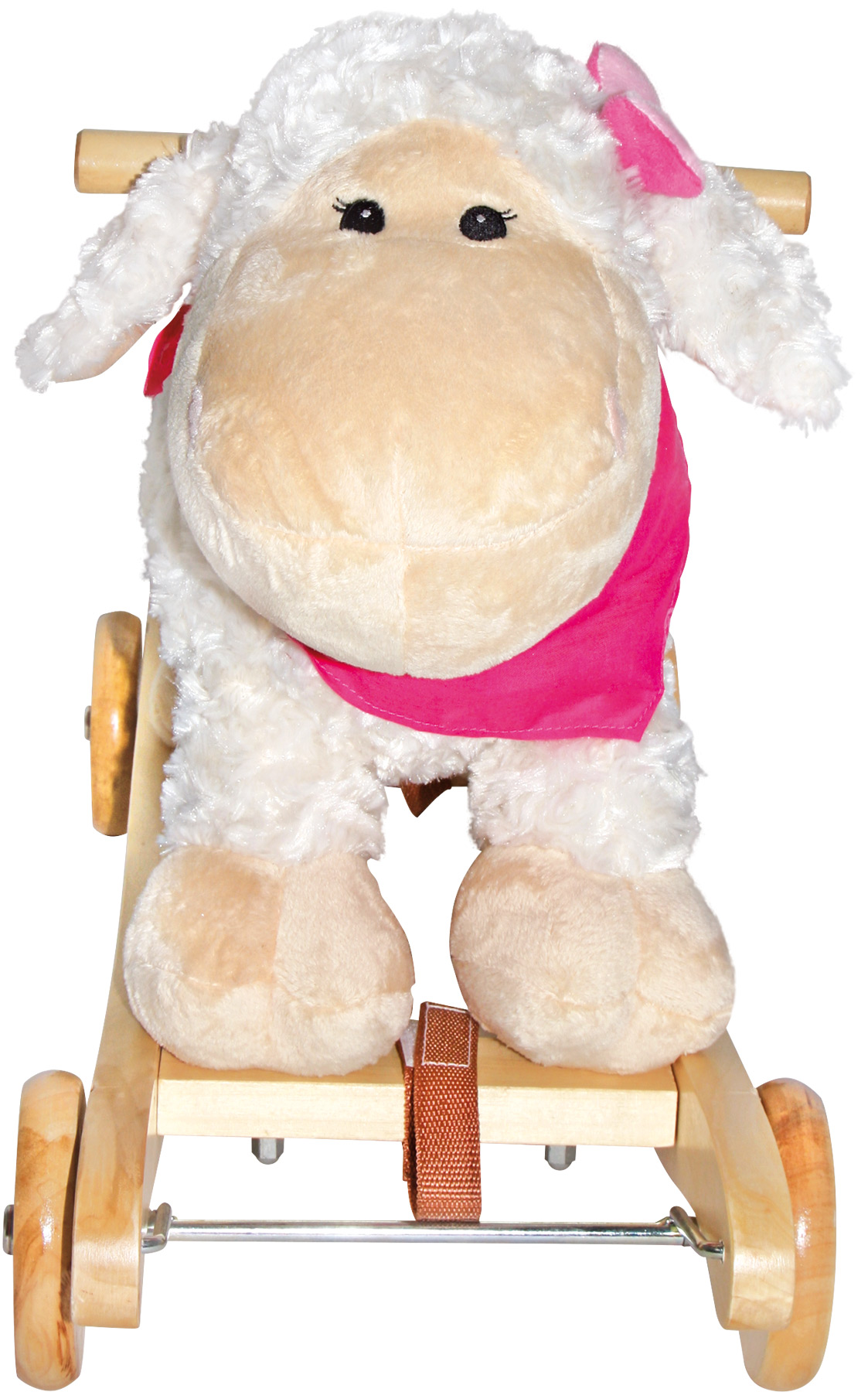 Ce mignon mouton avec son doux pelage bouclé est à bascule et à roulettes! En appuyant sur une oreille, une gaie chanson d‘enfant retentit. Un double plaisir, car les roues pliables changent l‘article à bascule en un article roulant! Piles non incluses.