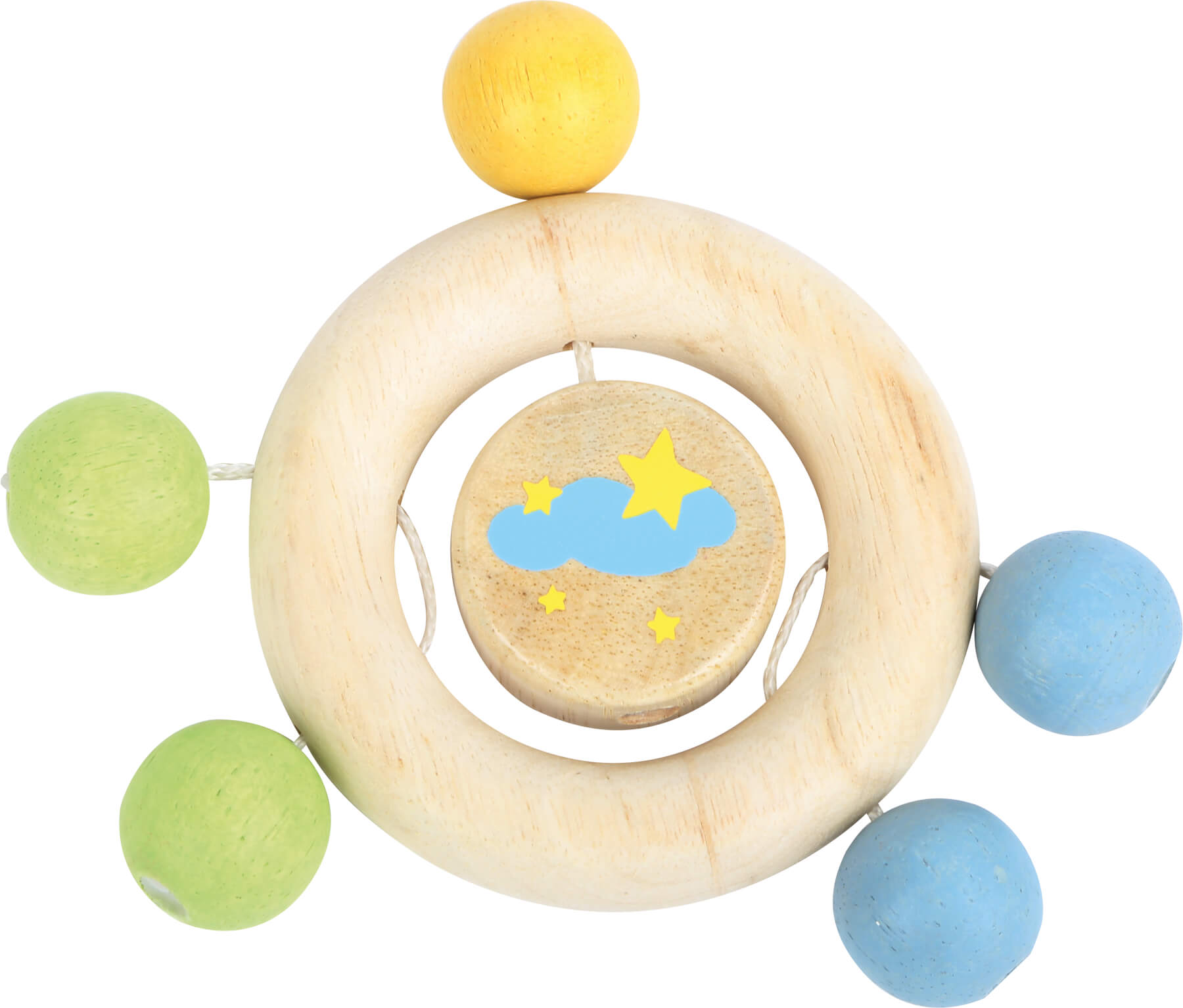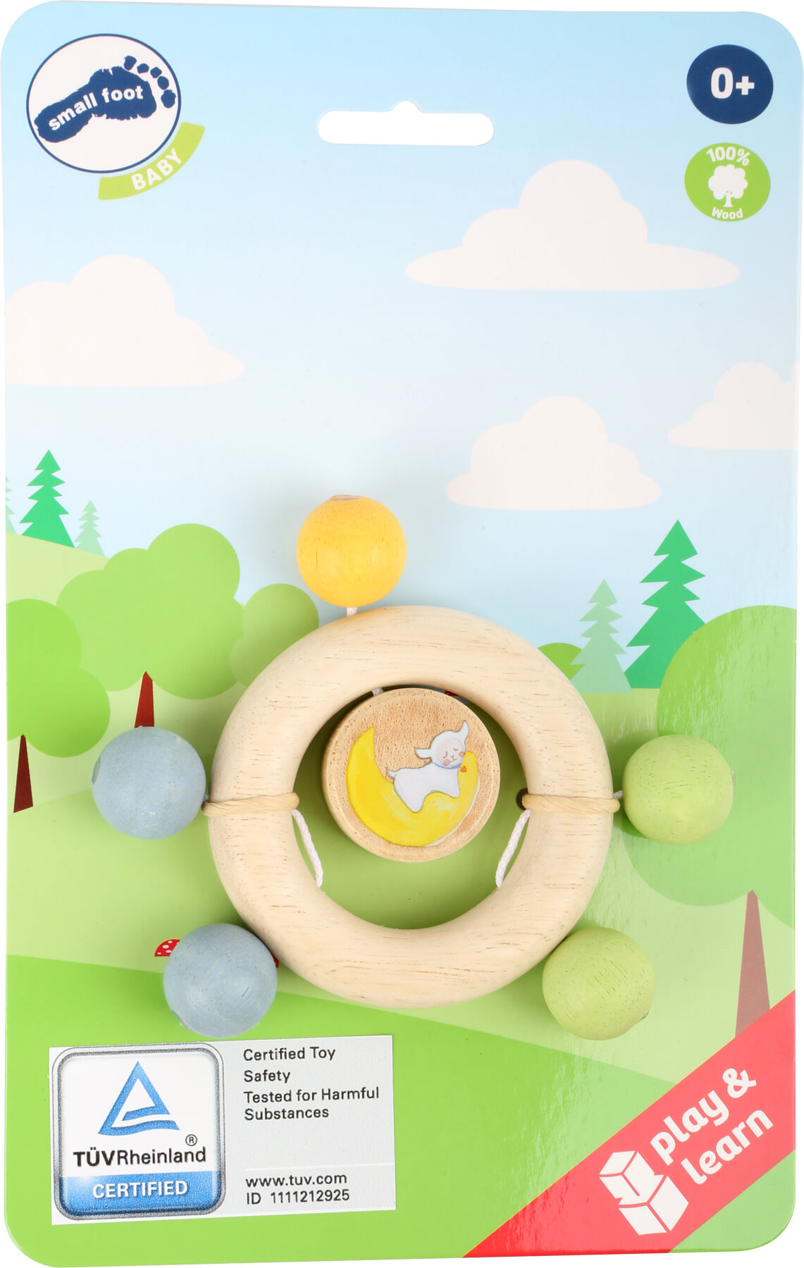 Comme c´est amusant! Cet anneau tient bien en main et grâce à sess perles multicolores bien attachées qui font des bruits intéressants lorsqu´on le secoue, il éveille l´attention des bébés. Le gentil ami Lotta forme la motricité et ne quittera pas si rapidement les mains des tout-petits. L´anneau est fabriqué en bois de haute qualité et recouvert d´un vernis résistant à la salive. Le petit mouton rêveur Lotta deviendra rapidement le meilleur ami des tout-petits sur le tapis d’éveil!