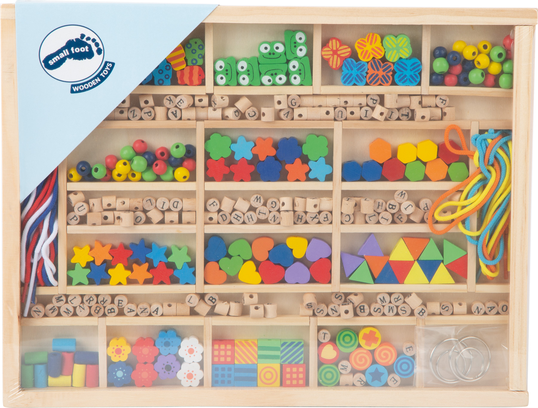 Créez vos propres bijoux – avec cette boîte de pièces à enfiler en bois, ce n’est pas un problème. Avec les éléments en bois et les rubans de différentes couleurs, il n’y a pas de limite à la créativité. En un rien de temps, chaque enfant devient un véritable créateur de bijoux. Avec de nombreux compartiments de tri pour un rangement parfait des différents éléments de bijoux. Une belle idée de cadeau pour un anniversaire !
