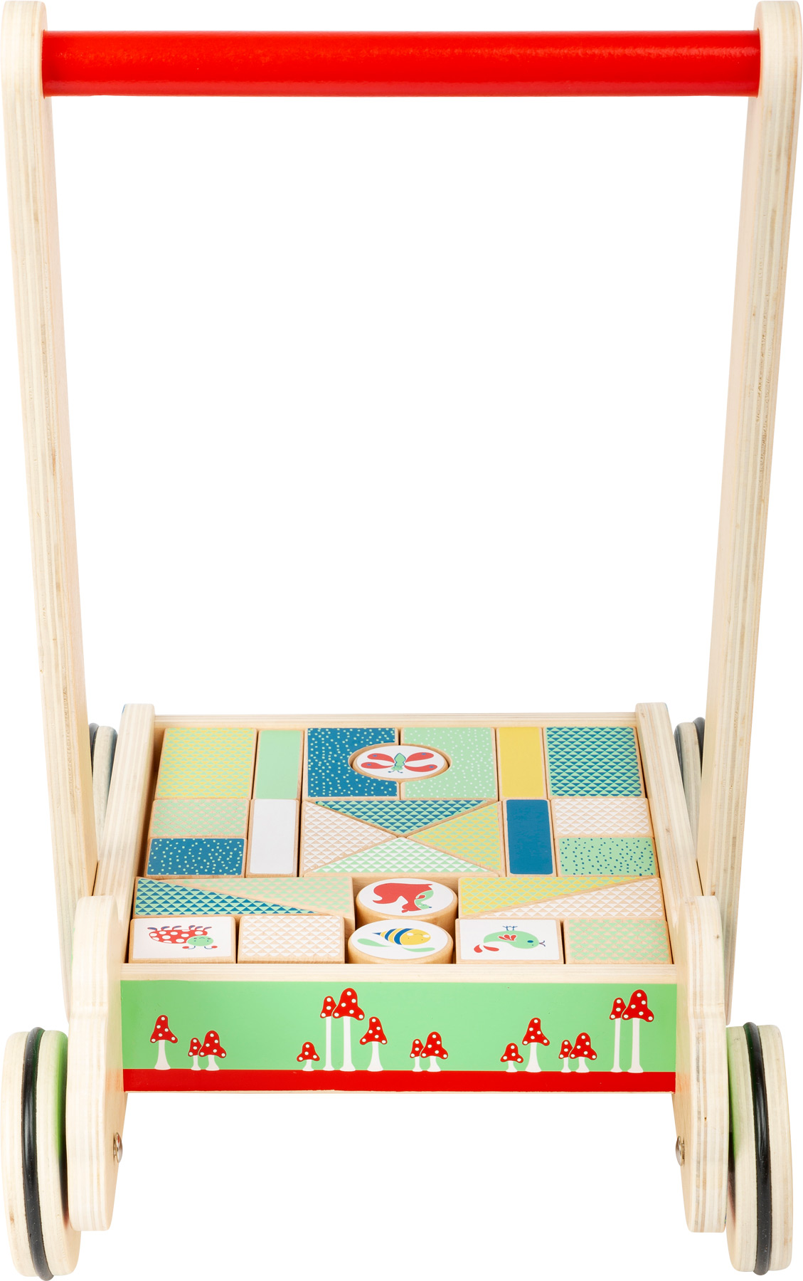 Apprendre à marcher avec hérisson, écureuil, abeille & amis! Ce chariot de marche au design moderne et reduit du groupe de produits « Move it! » soutient les enfants dans leurs premiers pas et favorise la motricité car les 27 blocs de construction sont toujours présents. Dans de différentes couleurs et formes, ils entraînent la compréhension des couleurs et des formes. Les roues caoutchoutées assurent également un roulement silencieux et sûr. Le chariot de marche est facile à monter et impressionne par son design et son contenu en bois très visible. Les nombreux détails fait avec beaucoup d’amour sont particulièrement attrayants pour les enfants. Rien ne s’oppose donc aux premières tentatives de marche!