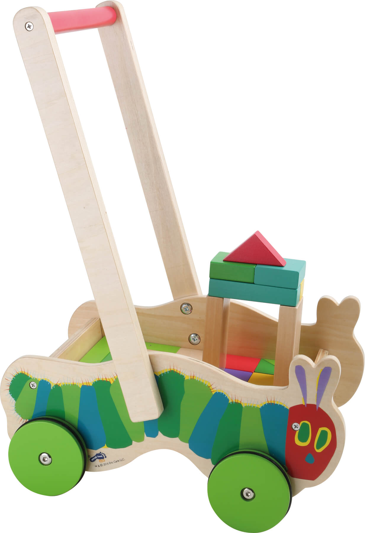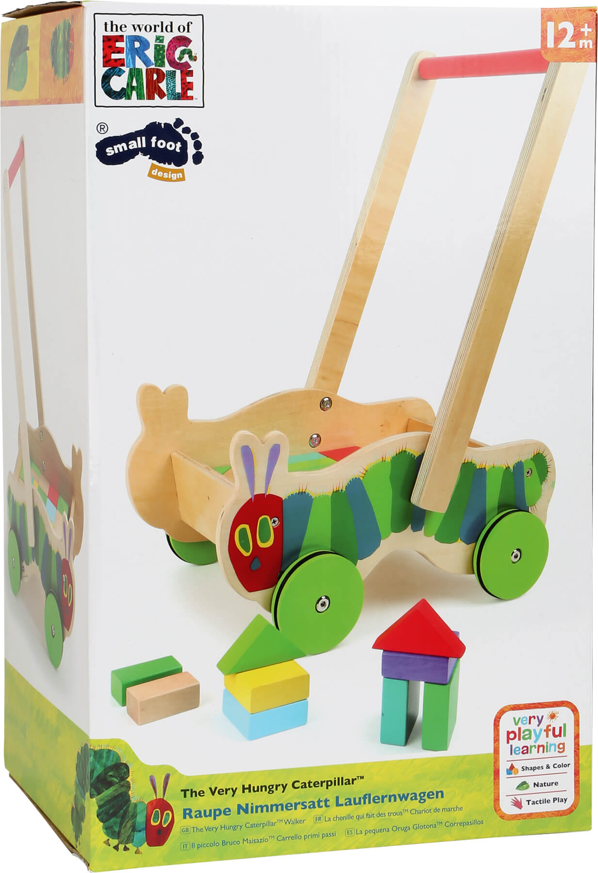 La chenille qui fait des trous d´Eric Carle convainc dans toutes ses variations. Ce trotteur favorise la marche des petits. Grâce aux 22 blocs en bois coloré, les pauses deviendront des haltes créatives.