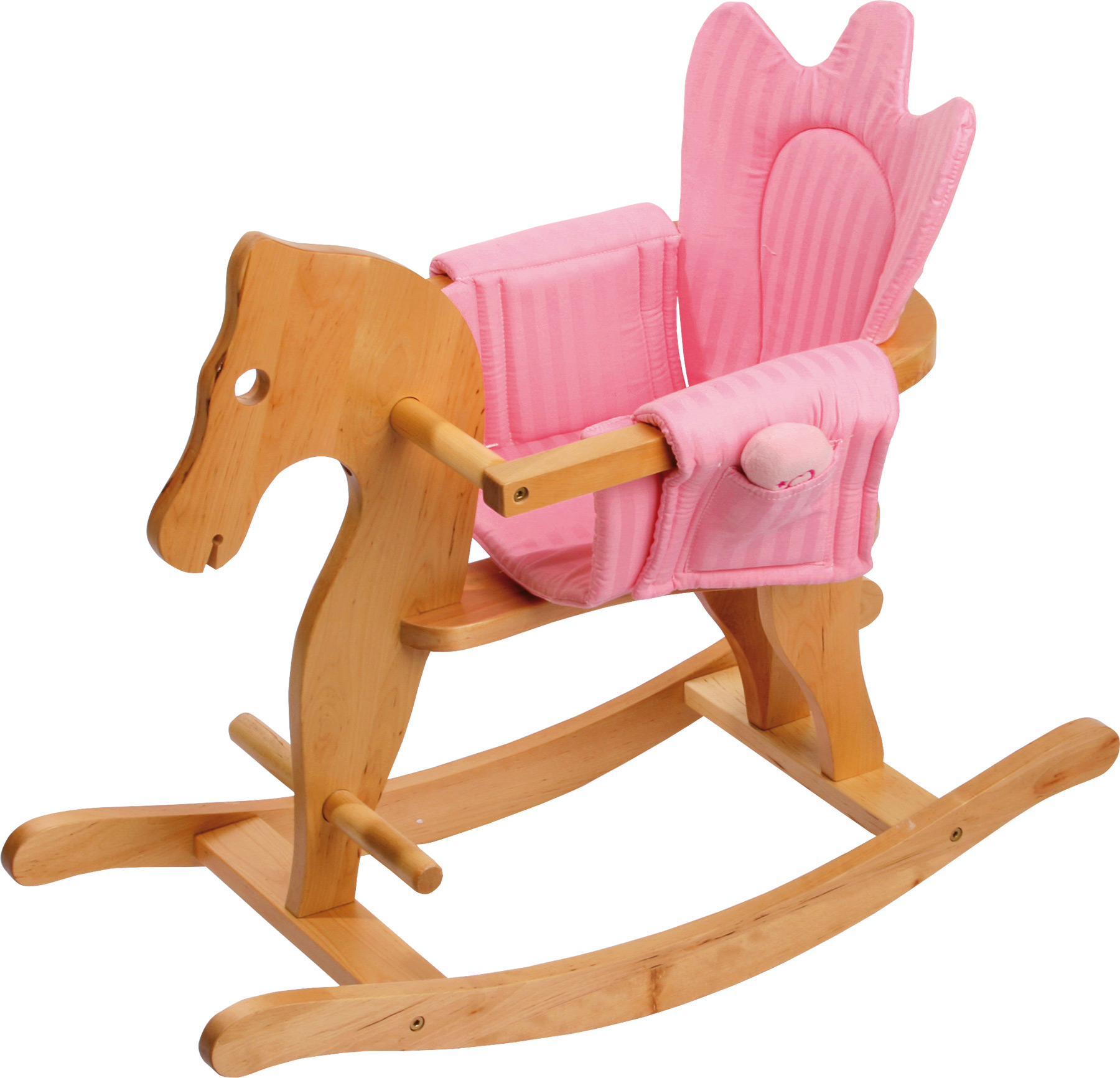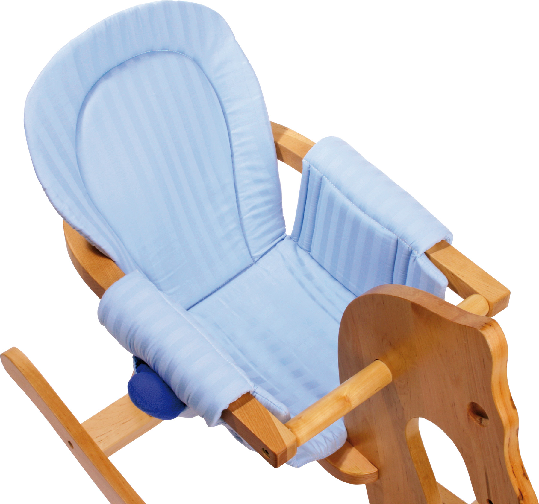 Grâce à la nacelle, les petits cavaliers ne risquent pas de tomber ! Pour plus de confort, la noble monture possède 2 garnitures – en bleu ciel et en rose – fixées par fermeture velcro. Dans l‘une des deux petites poches se trouve une boîte à musique en peluche. Piles incluses.