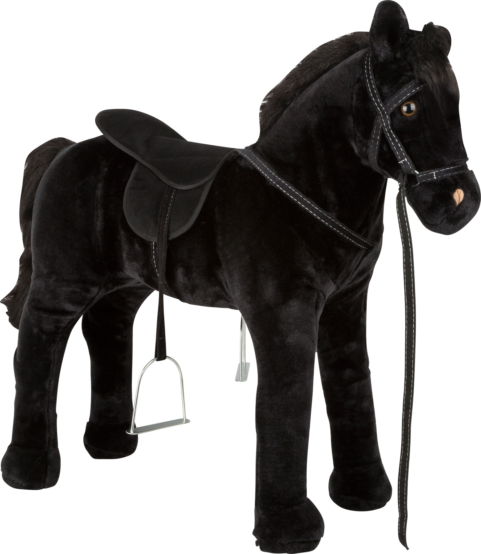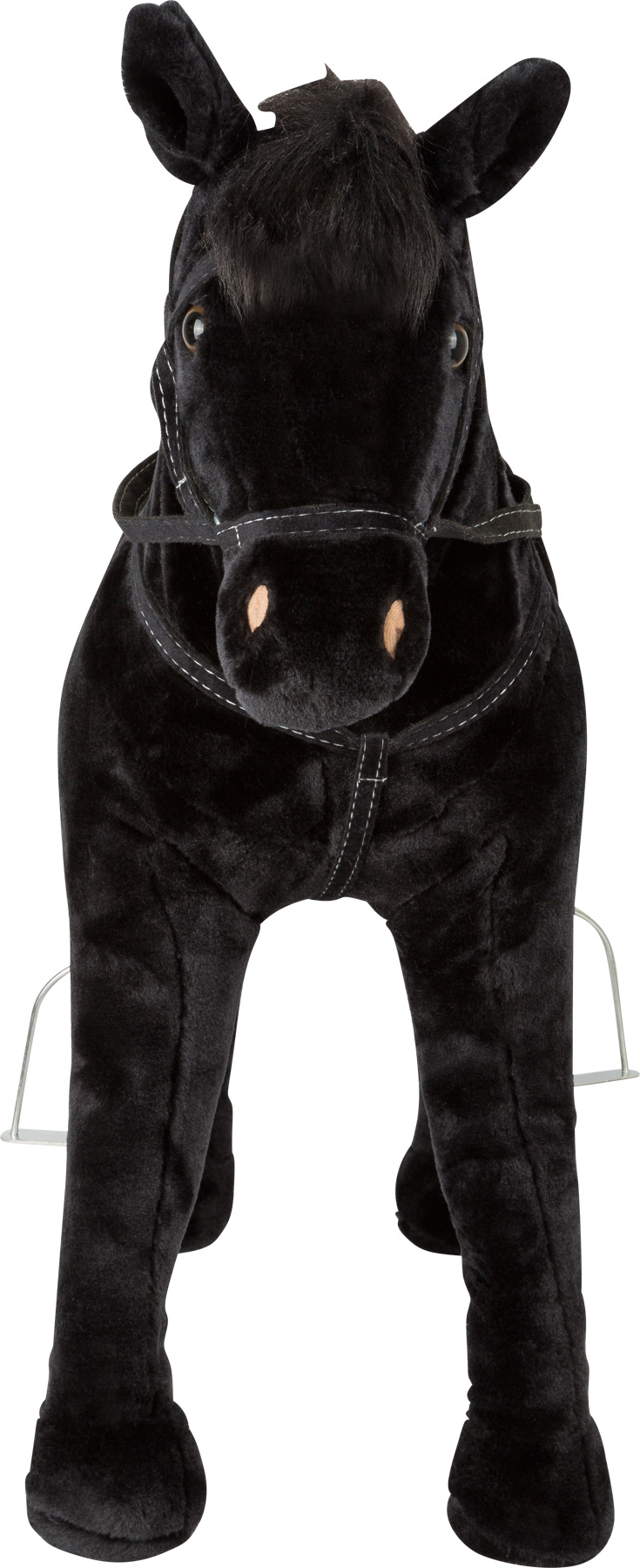 Ici, les petits cavaliers s´éclatent! La fourrure noire semble avoir été fraîchement toilettée et vous invite à vous blottir en permanence. Lorsque l´oreille du cheval est pressée, le hennissement original retentit et augmente le plaisir de monter à cheval. Pour une promenade parfaite, le joli cheval est équipé d´étriers et de rênes. Piles non incluses. Maintenant, l’équitation peut être pratiquée avec diligence dans la chambre d’enfant.