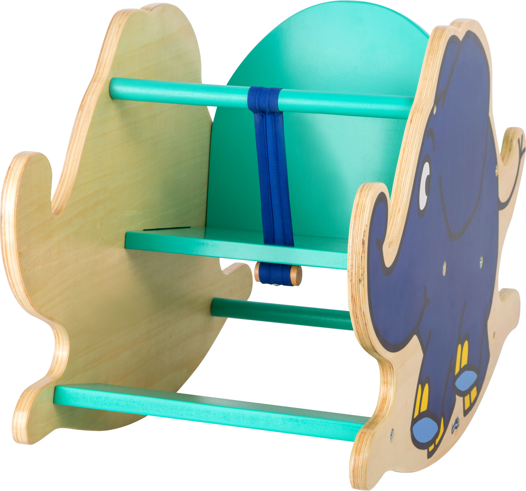 Cet éléphant adore basculer en avant et en arrière ! Le célèbre petit éléphant bleu décore ce solide article à bascule. Avec un dossier résistant, une hauteur d’assise basse et une barre en bois pratique pour se tenir, l’éléphant à bascule garantit une assise sûre. L’arête souple empêche de glisser, même en bougeant beaucoup. Ainsi, il est possible de favoriser la motricité et la coordination. L’éléphant à bascule est un superbe objet pour les chambres d’enfants et ravira tous les petits.