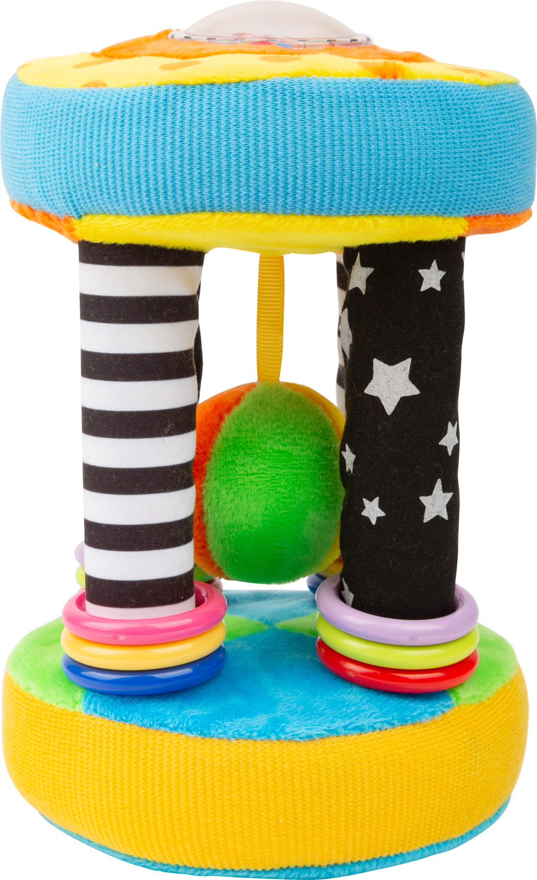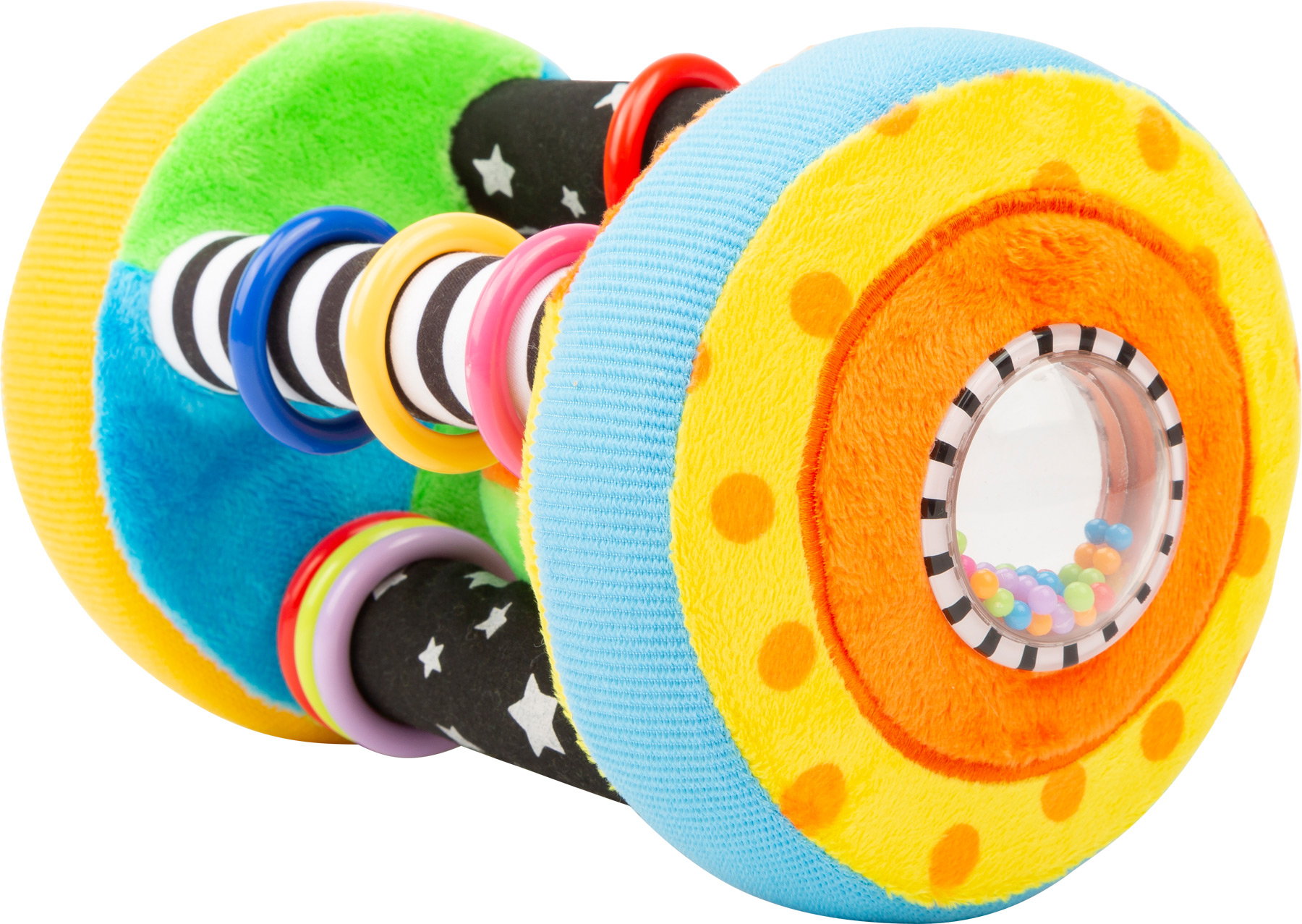 Du plaisir sur toute la ligne ! La structure cylindrique de ce jouet de motricité en peluche douce pour bébés permet même aux plus petits d’éprouver une grande variété de sensations à tâter et à saisir. Posé sur le côté, il roule sur le sol – une véritable joie pour les enfants rampants. Lorsqu’on pousse la balle, un grincement joyeux retentit. Un bel enrichissement pour la chambre d’enfant.