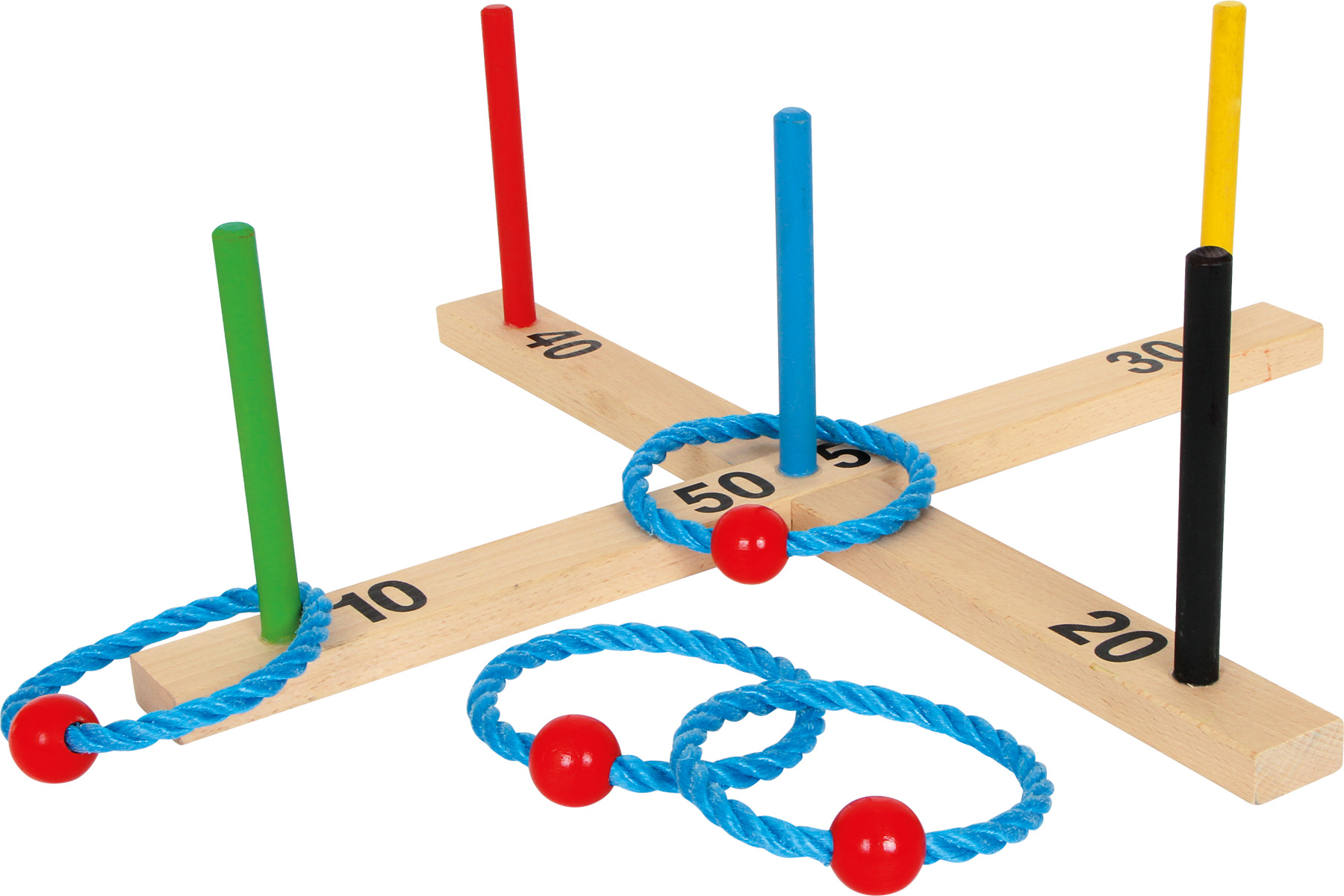 Entraîner son habileté en s’amusant! Les 4 anneaux tressés sont pourvus de boules en bois verni rendant le jet précis. Il faut les lancer sur les bâtonnets en essayant de marquer le maximum de points – C’est en forgeant qu’on devient forgeron !