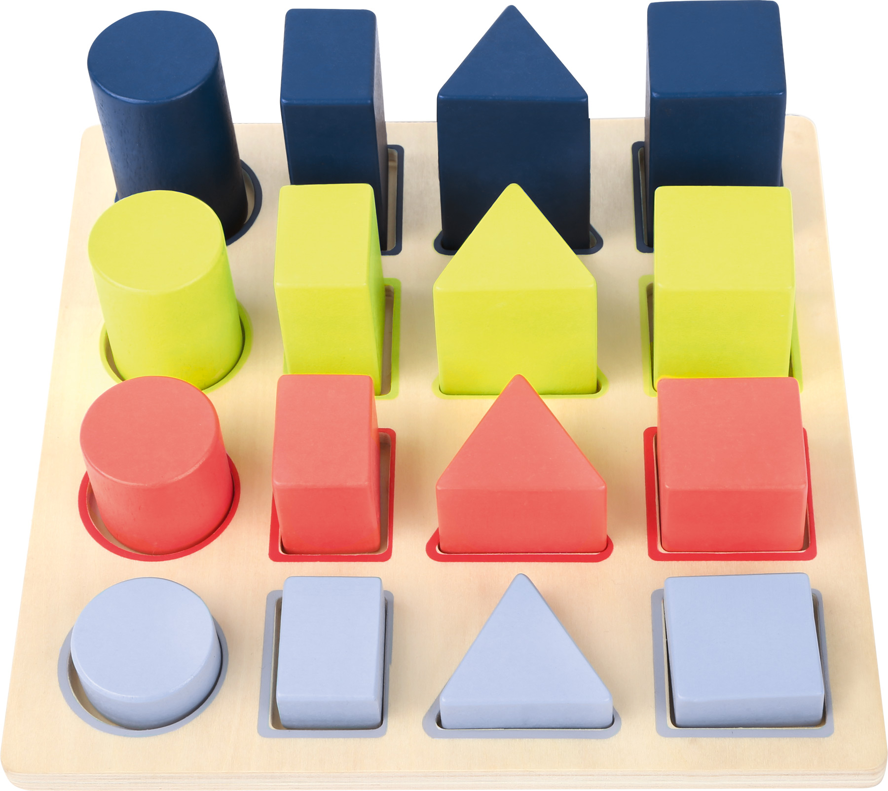Un puzzle avec effet éducatif ! Ce puzzle en bois certifié FSC® 100% permet une première approche de la géométrie. Différents blocs pour apprendre la notion du volume dans l’espace et différentes couleurs permettent à l’enfant de se repérer. Les codes de couleurs aident les enfants à reconnaître la hauteur des cubes de construction et de les attribuer à la ligne correspondante. Enseigne une première compréhension des quantités et des fractions. Cela rend l’apprentissage joyeux et amusant.