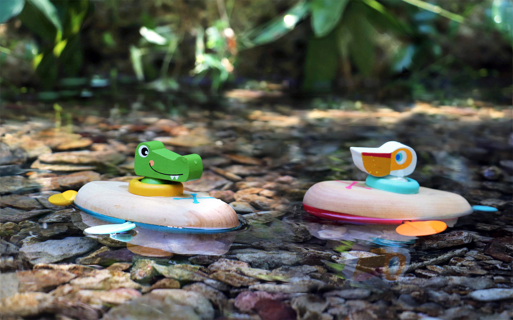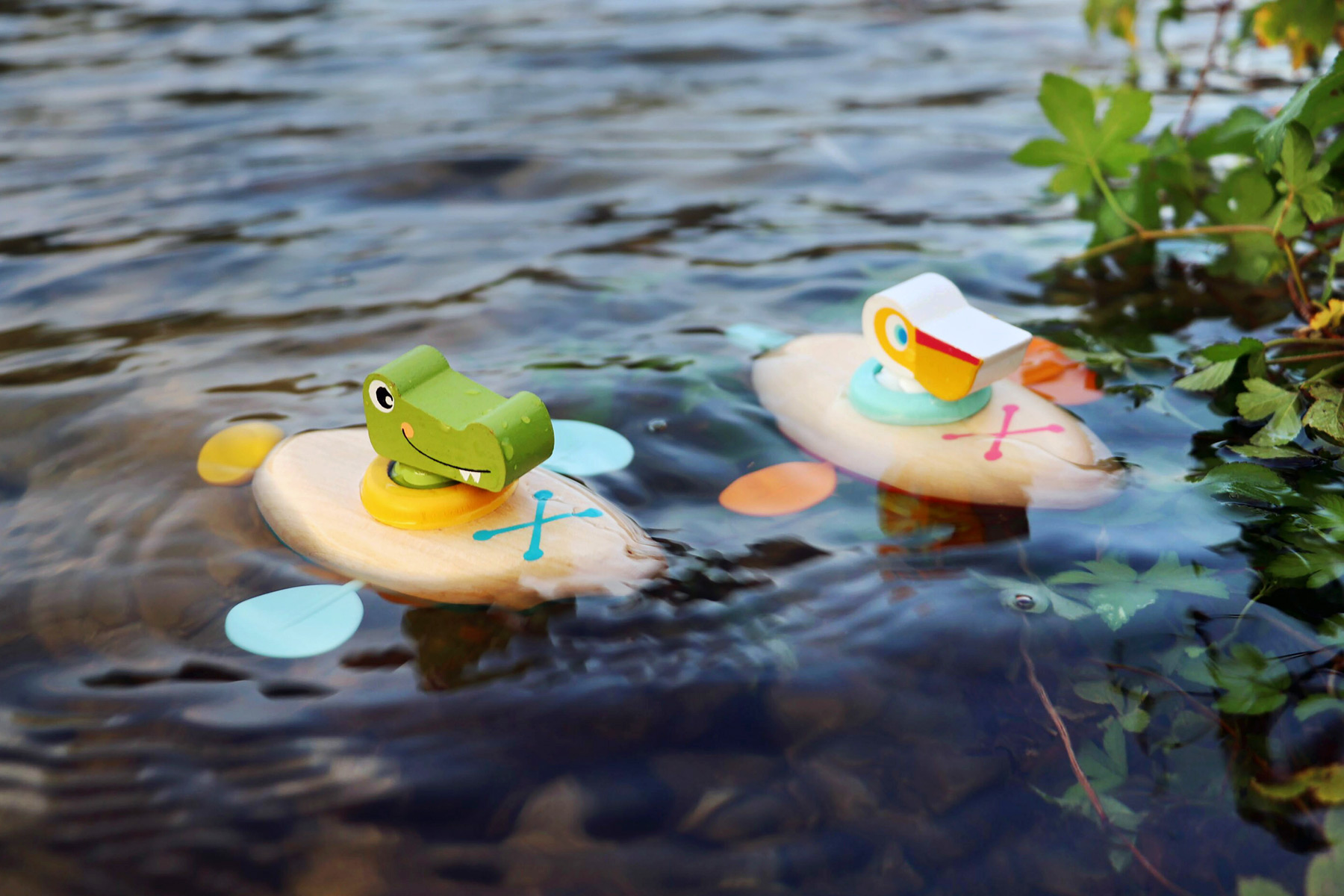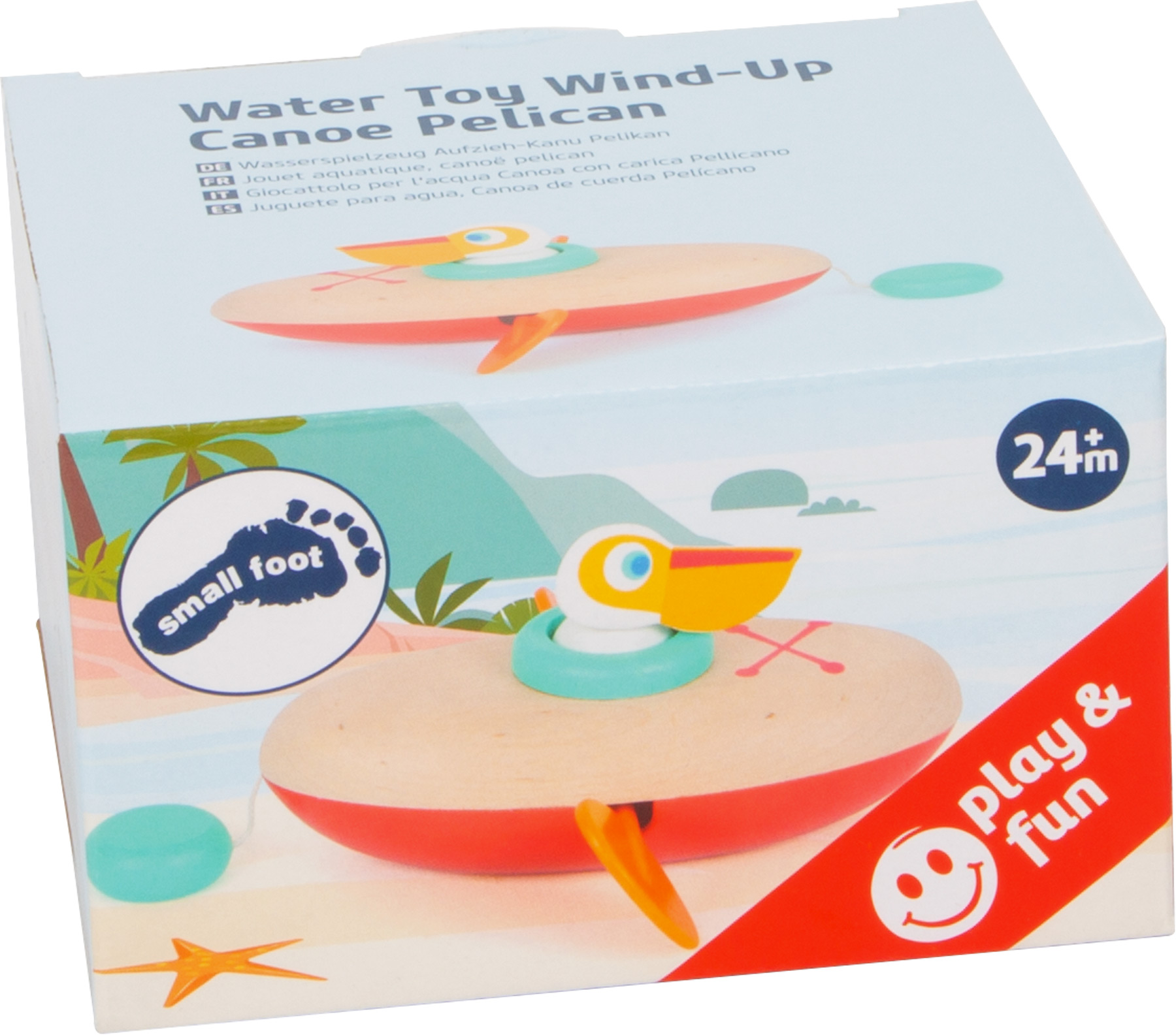 Place au petit pélican! Ce mignon pélican dans son canoë en bois et plastique offre un grand plaisir de baignade lorsqu’il navigue dans l’eau. Le mécanisme pratique de remontage assure la rotation des deux pagaies latérales du canoë. Pour une longue durée de vie du produit, sortez les jouets de l’eau après chaque utilisation et séchez-les bien. Les jouets aquatiques en bois sont l’alternative durable aux animaux en plastique et en caoutchouc pour le bain ! Rien ne s’oppose à ce que l’on s’amuse avec des jeux de rôle en haute mer. Au fait, les petits apprennent le principe de cause-effet grâce au mécanisme de remontage. Petite et pratique, cette mignonne petite créature aquatique se glisse facilement dans n’importe quel sac de bain ! Avec ce jouet aquatique, il n’y a pas de limites au plaisir de la baignoire, de la pataugeoire ou de la piscine!
