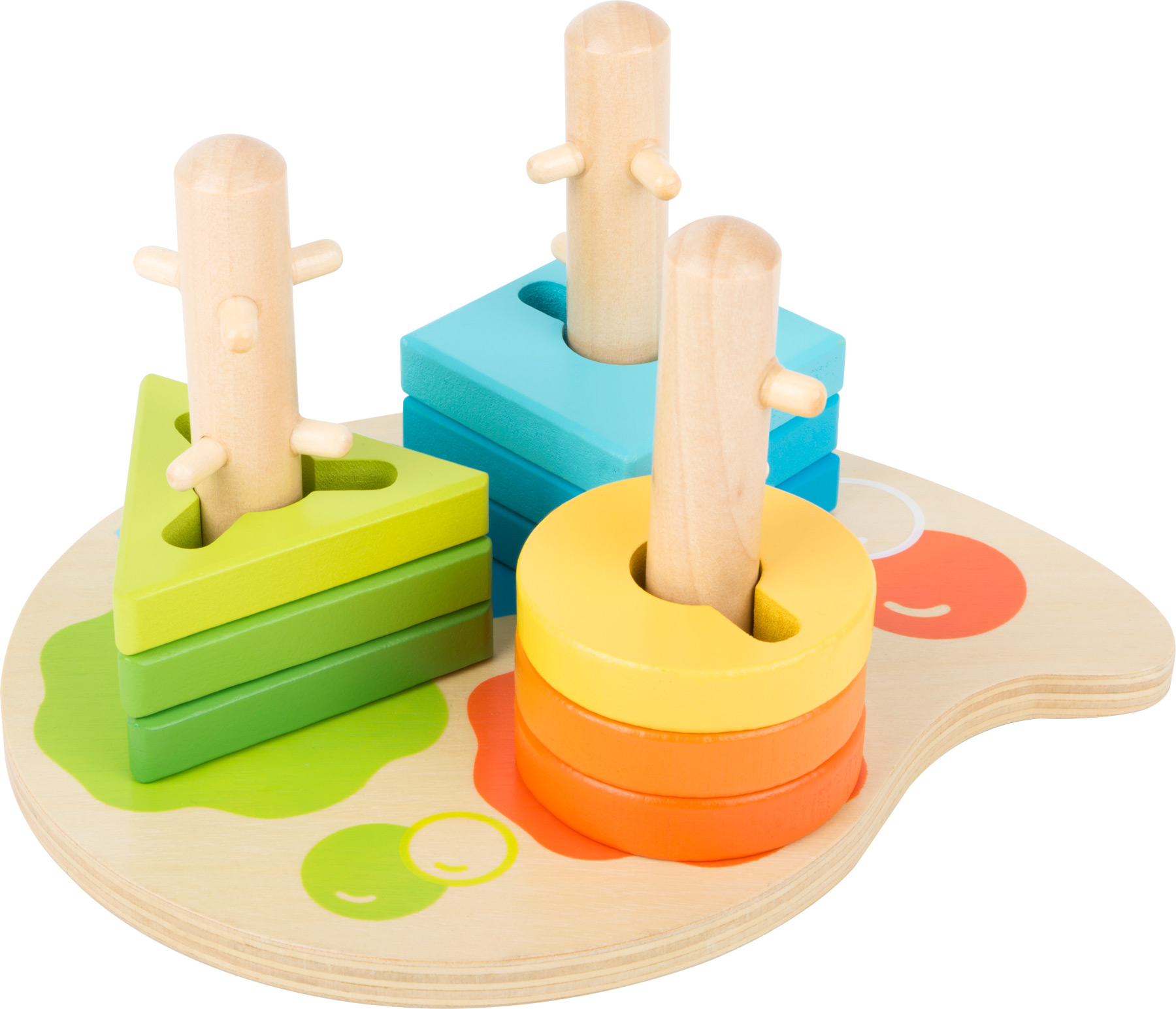 Un jouet de motricité coloré ! Ici, les petits artistes essaient d’associer des formes géométriques en bois à la couleur de la palette du peintre correspondante. Une affaire délicate car les formes doivent être tournées de telle sorte qu’elles surmontent les obstacles sur les tiges de bois. Qui est prêt à relever le défi?
