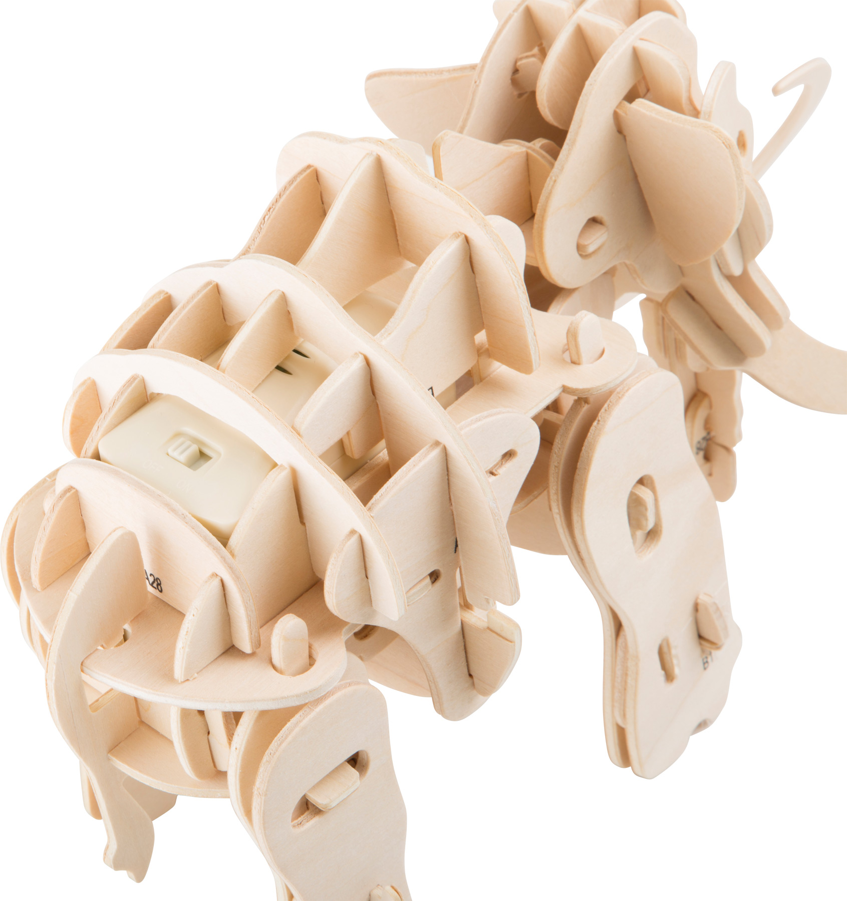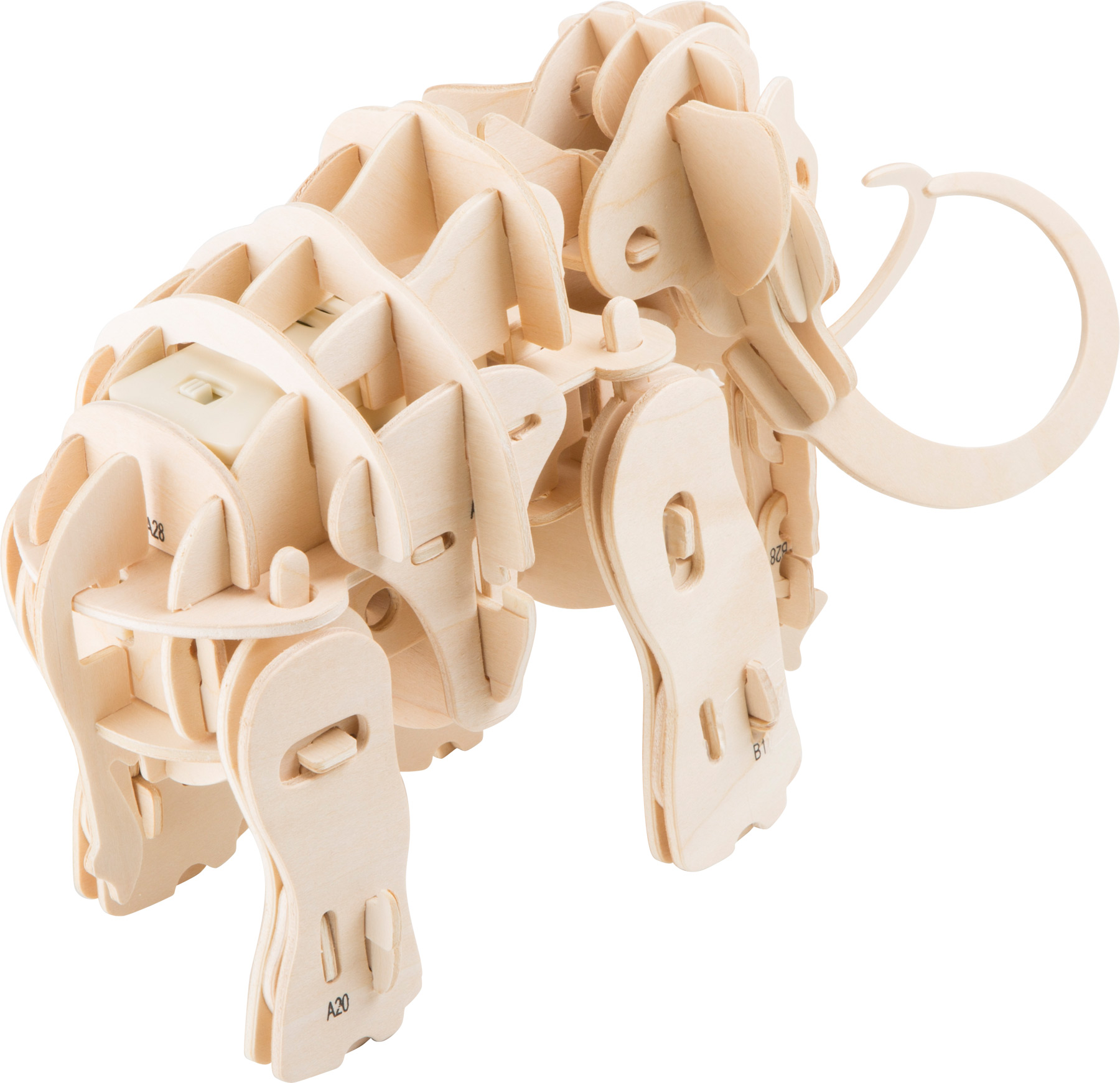 Ce kit en bois est une construction haut de gamme. Le mammouth herbivore en solide bois stratifié est un modèle près de la réalité consistant en 89 pièces. Le clou : le système mécanique à piles permet de bouger les pieds. Un son bruyant de mugissement souligne l´originalité. Notice de montage comprise. Piles non incluses.