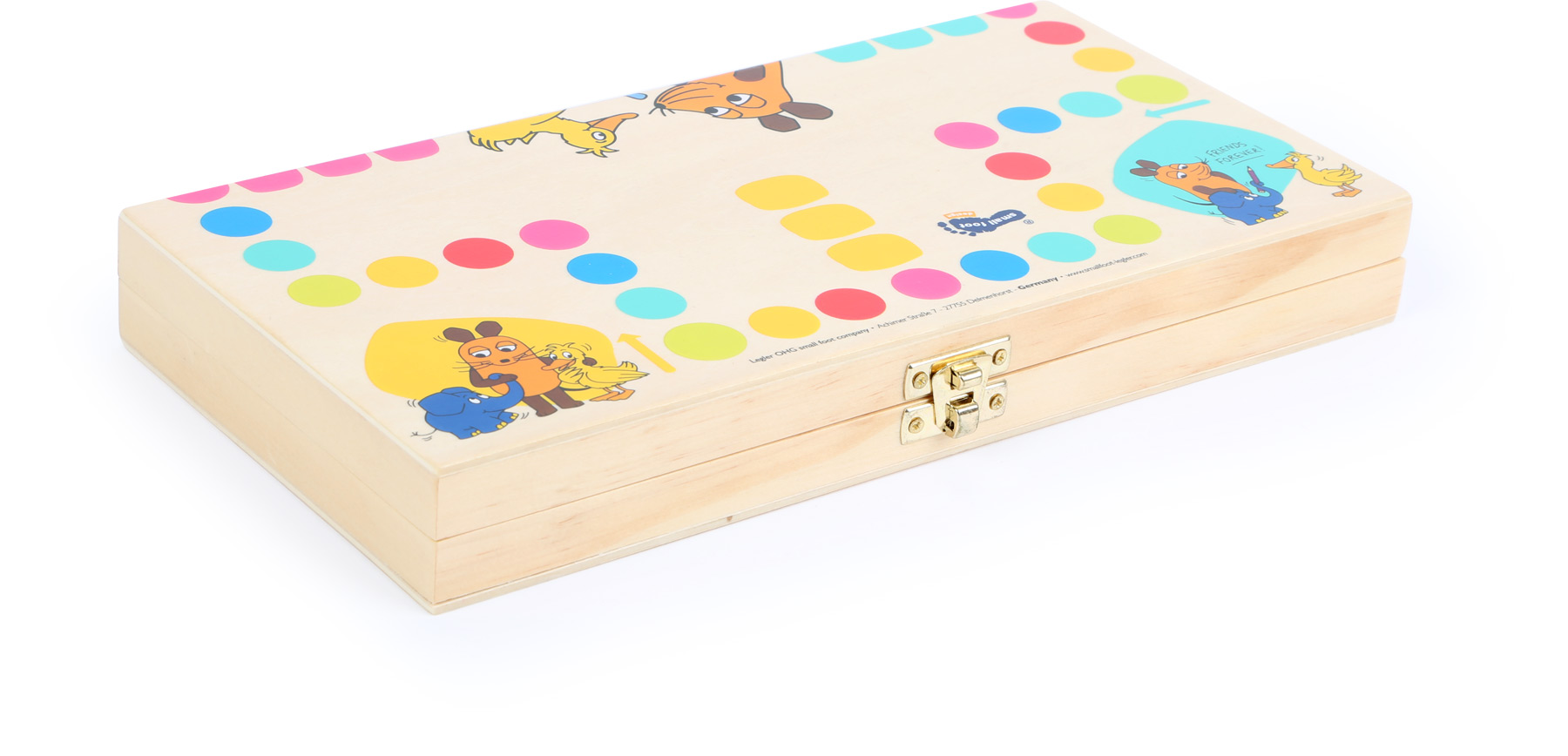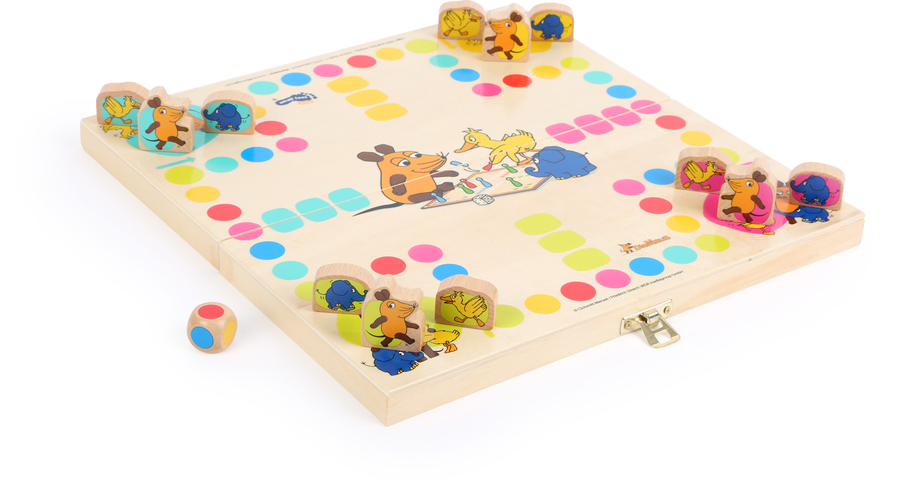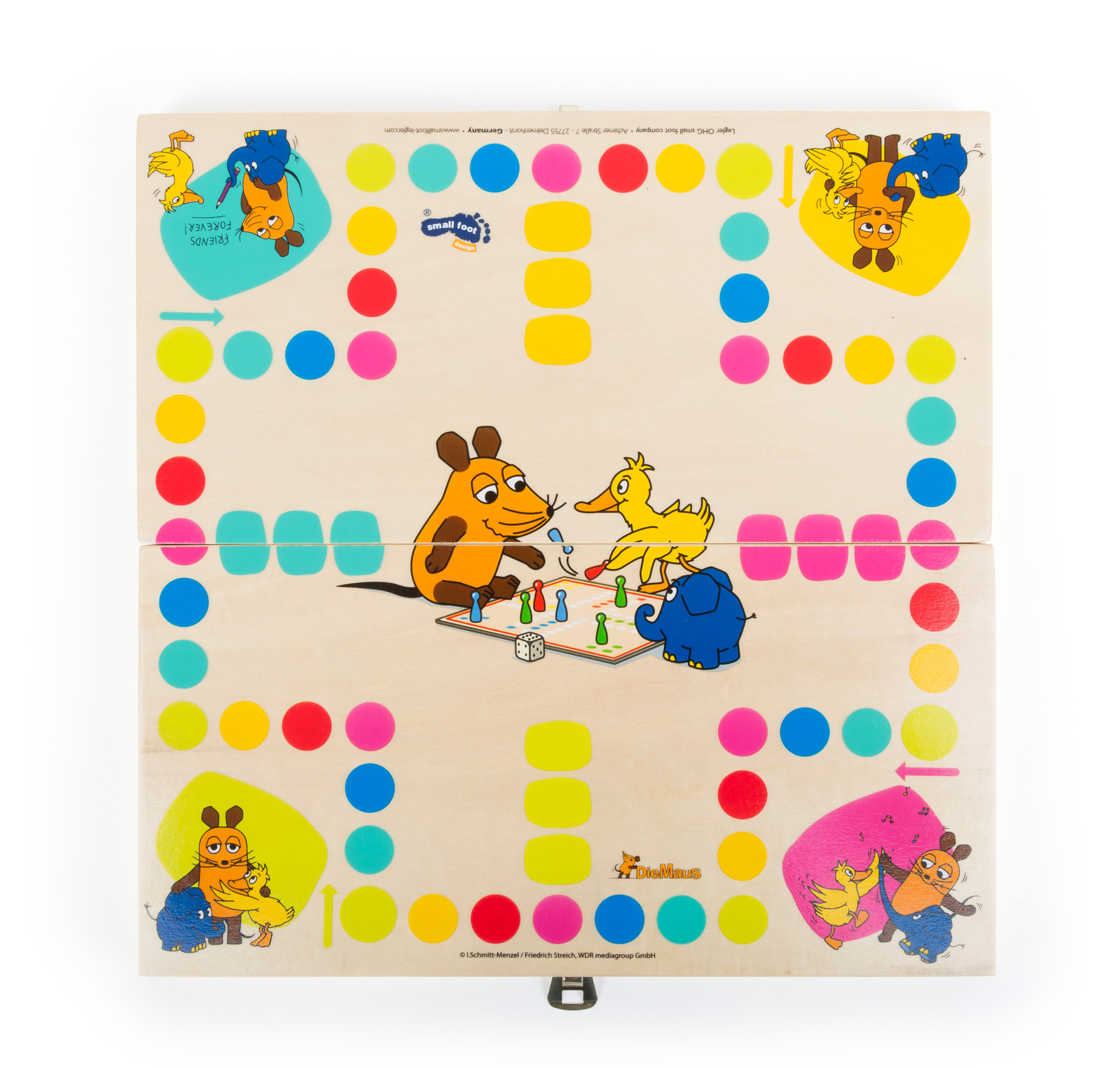 Sur ce plateau de jeu en bois laminé coloré, la Souris, l´Eléphant et le Canard garantissent beaucoup de plaisir ludique selon des règles simples. Les trois jolies figurines sur fond de couleurs différents tiennent bien en main. Grâce au système bien-pensé de couleurs, les petits pourront participer sans compter. Les trois amis tentent de faire le tour du plateau de jeu afin d’arriver le plus rapidement possible à destination. Ludo avec la Souris est un jeu de plateau pour toute la famille !