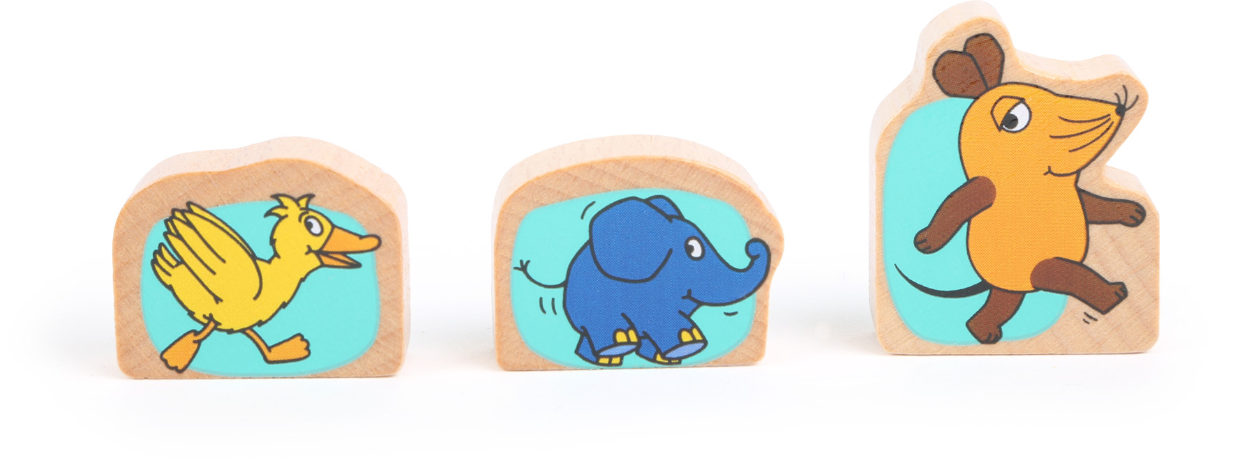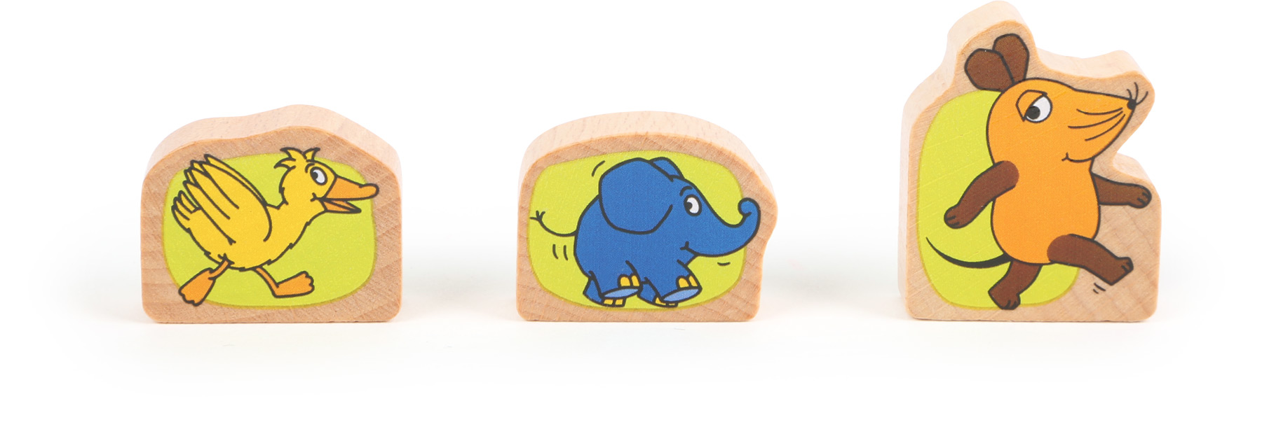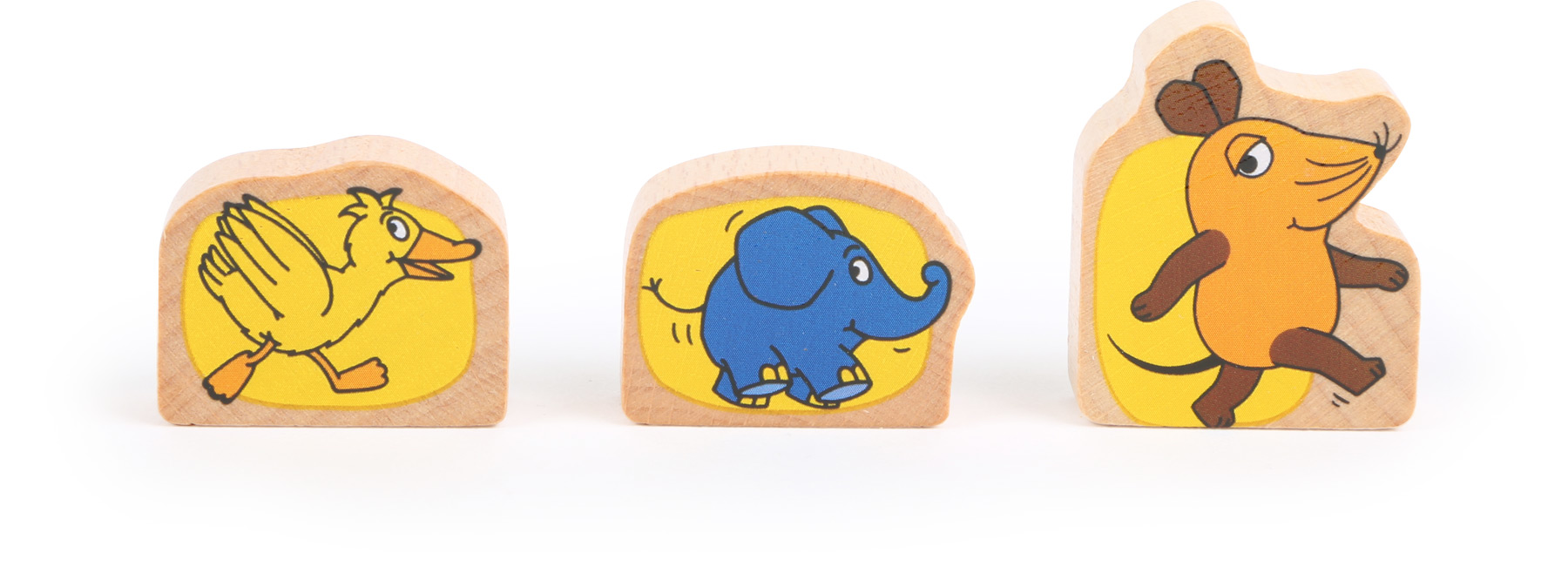Sur ce plateau de jeu en bois laminé coloré, la Souris, l´Eléphant et le Canard garantissent beaucoup de plaisir ludique selon des règles simples. Les trois jolies figurines sur fond de couleurs différents tiennent bien en main. Grâce au système bien-pensé de couleurs, les petits pourront participer sans compter. Les trois amis tentent de faire le tour du plateau de jeu afin d’arriver le plus rapidement possible à destination. Ludo avec la Souris est un jeu de plateau pour toute la famille !