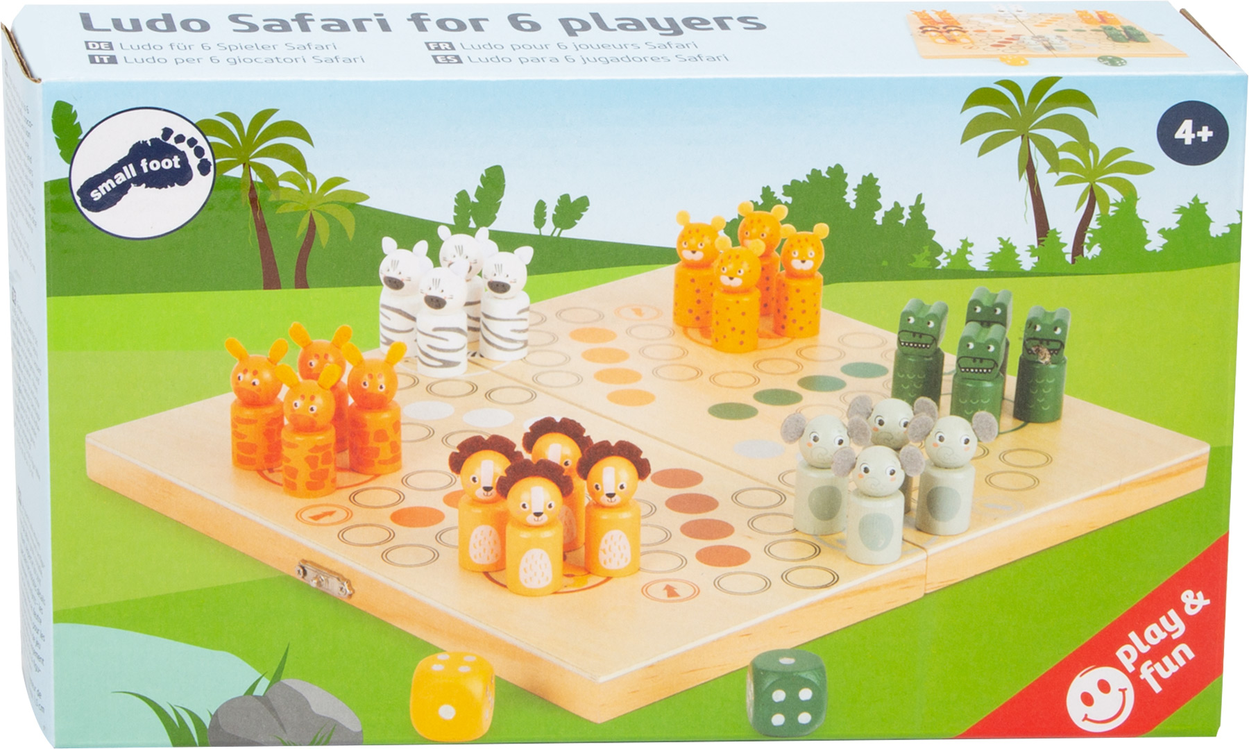 Un grand Ludo amusant pour 6 joueurs maximum! Dans ce jeu classique en bois, le but est d’amener vos animaux de la steppe dans la « maison ». Les figurines de zèbre, girafe, crocodile, éléphant, léopard et lion sont conçues dans les moindres détails et conviennent aux enfants – les oreilles et les crinières en feutre sont de véritables attraits pour les yeux. Pratique: le plateau de jeu pliable sert de boîte de rangement. Les deux dés indiquent le nombre de cases par lesquelles la pièce du joueur peut avancer. Les enfants apprennent à compter en jouant avec le nombre indiqué sur les dés. Le jeu de sociétés avec le design des animaux peut accueillir jusqu’à six joueurs et les joyeux petits animaux adoucissent les victoires et les défaites des enfants dans la même mesure. Un must dans le box de jouets! Aussi idéal pour les déplacements!
