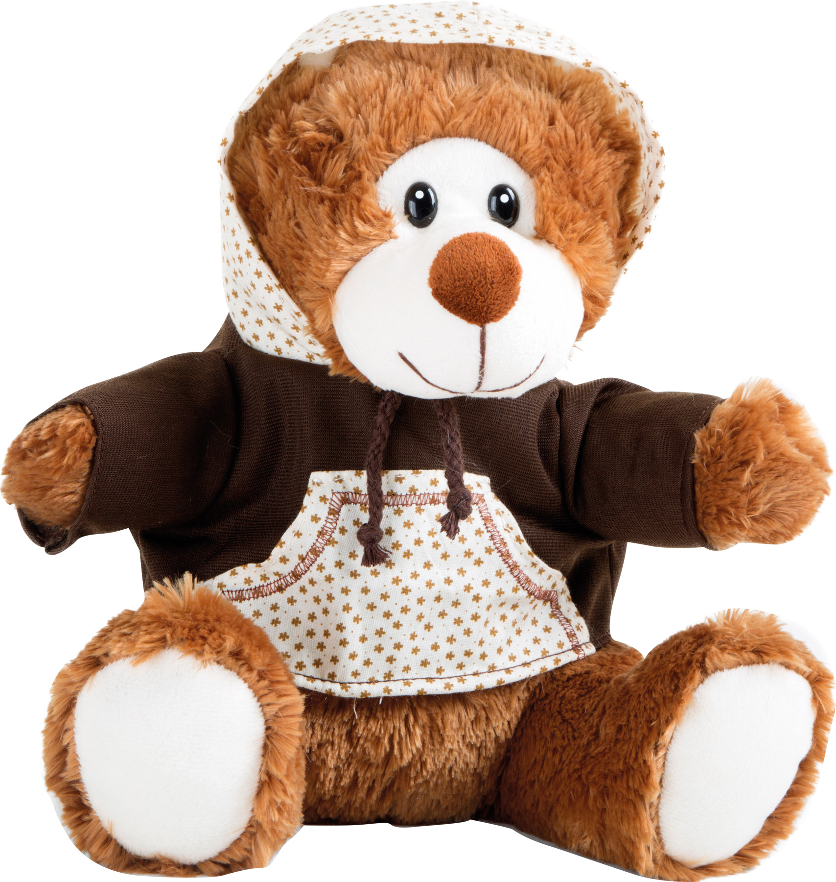 Aucun enfant ne veut lâcher ce joli petit ours avec son regard bienveillant, son doux pelage et son pullover à capuchon qui adore les longs câlins.