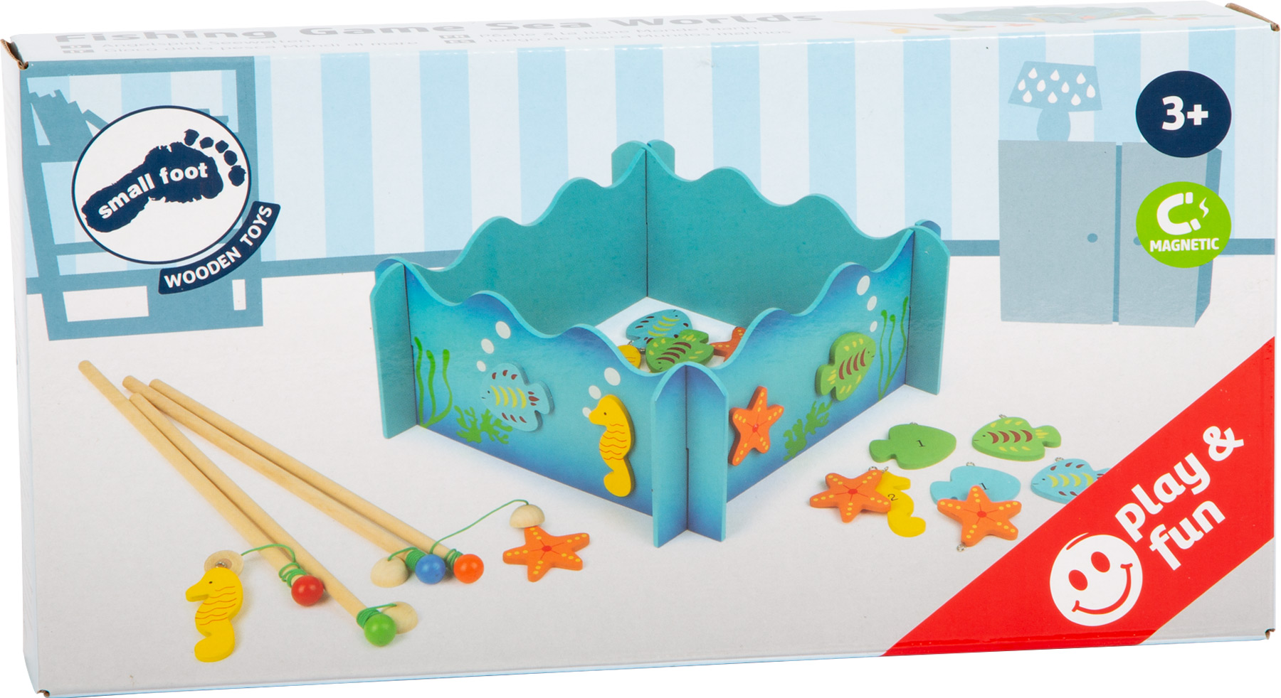 Qui pêche le plus de poissons ? Pêchez des poissons et des hippocampes colorés avec ce jeu de pêche à la ligne en bois en format 3D. Les cannes à pêche en bois avec aimants vous aident à pratiquer la dextérité et la patience.