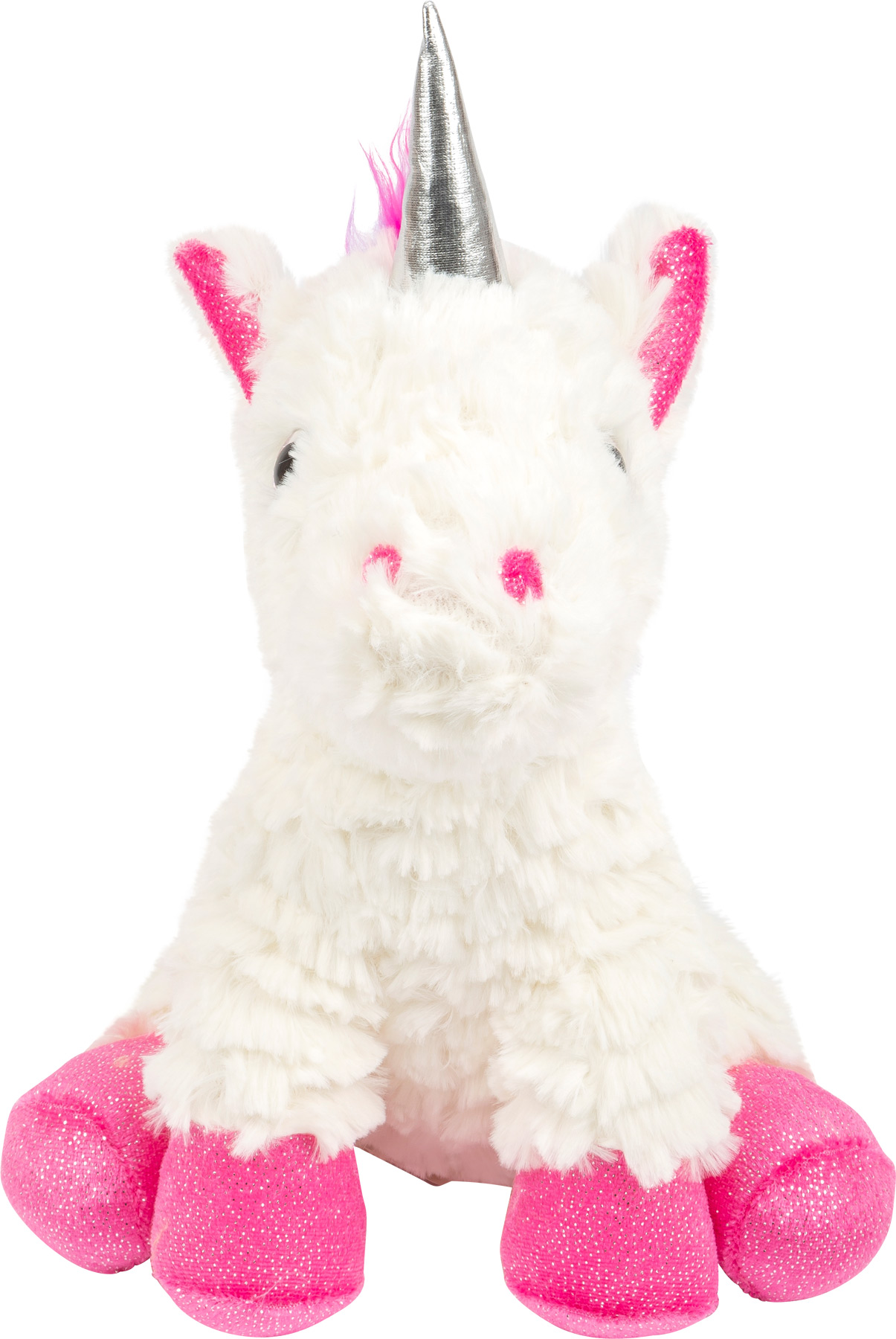 Une licorne en peluche à aimer ! La fourrure câline et très douce anime chaque enfant à faire des câlins. La mignonne créature fantastique ne demande qu’à vivre des aventures colorées avec son propriétaire. Les accents roses scintillants, la licorne et la crinière arc-en-ciel sont de véritables accroche-regards. Qui veut me faire un câlin ?