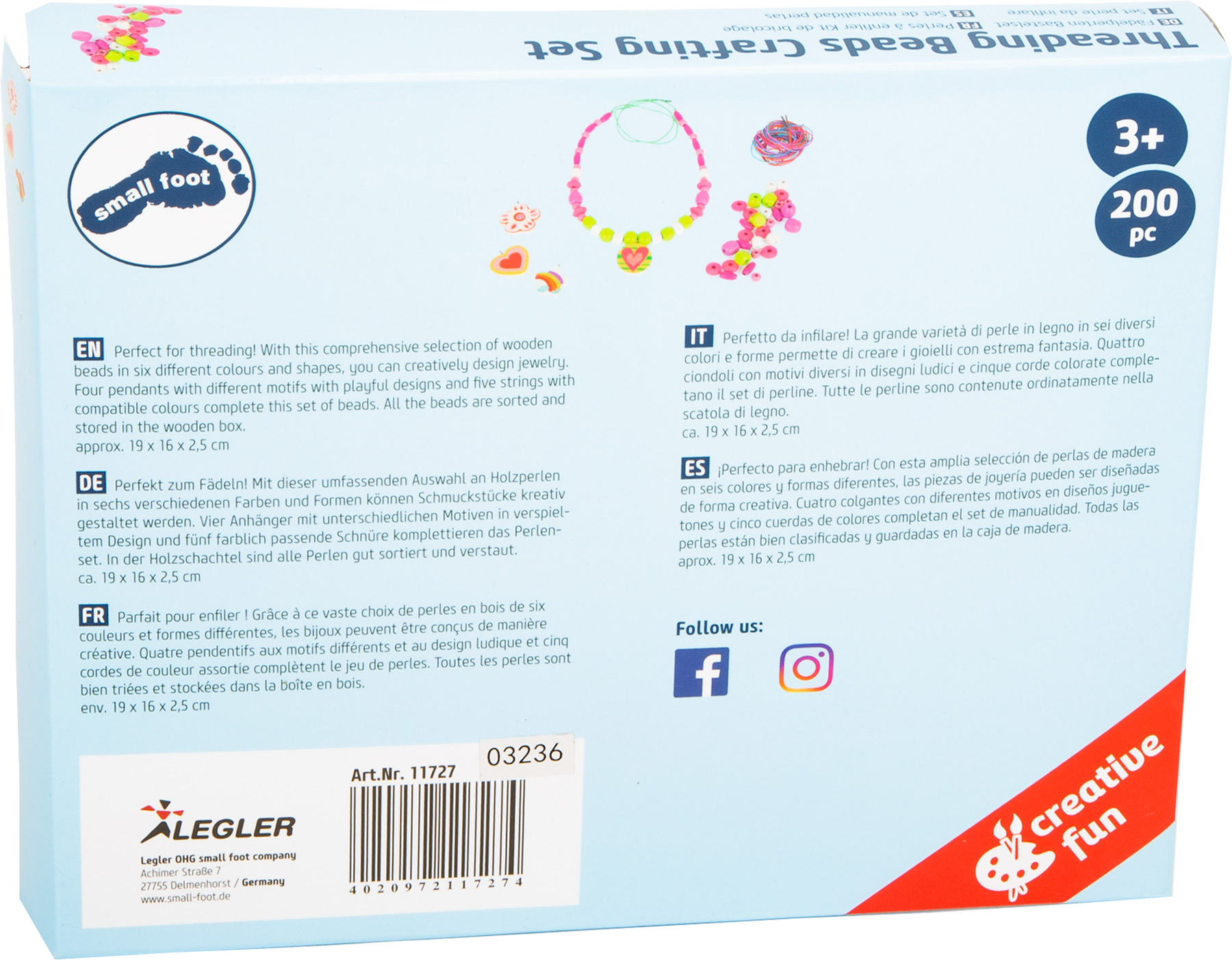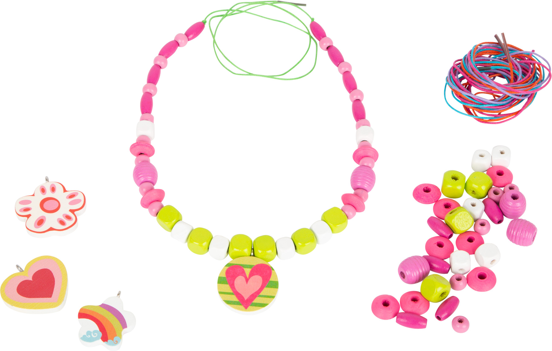 Parfait pour enfiler ! Grâce à ce vaste choix de perles en bois de six couleurs et formes différentes, les bijoux peuvent être conçus de manière créative. Quatre pendentifs aux motifs différents et au design ludique et cinq cordes de couleur assortie complètent le jeu de perles. Toutes les perles sont bien triées et stockées dans la boîte en bois. Le bobinage de perles permet d’entraîner la motricité fine et de promouvoir la créativité. Avec ce jeu de perles à enfiler pour colliers et bracelets individuels, aucun souhait ne reste insatisfait.