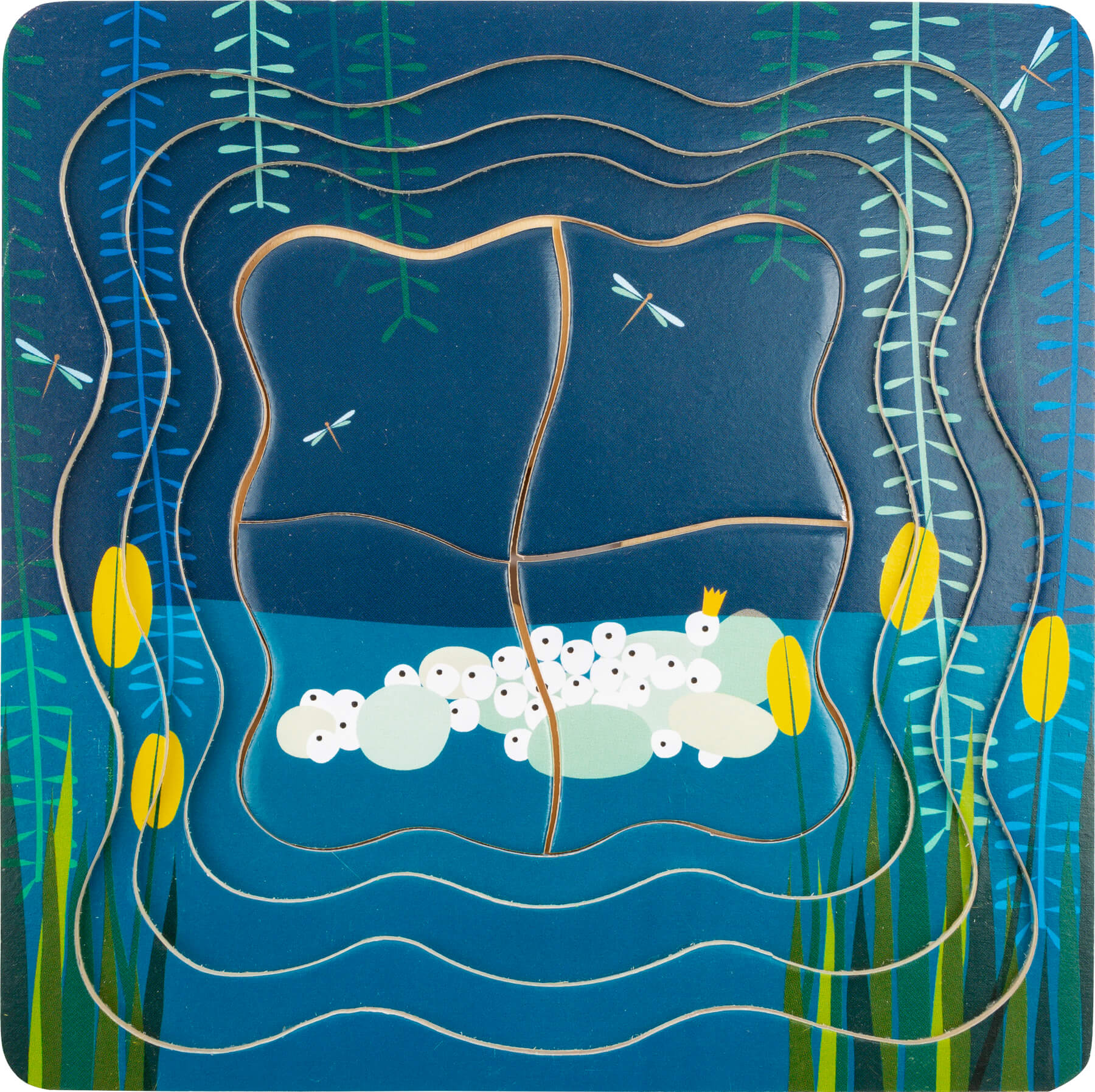 Ce puzzle de quatre couches apprend aux enfants le développement d’une grenouille. En commençant par seulement 4 pièces dans la première couche, les petits fans de puzzles peuvent s’entraîner et prouver leurs compétences avec chaque couche supplémentaire et 6 ou 9 pièces de puzzle. Ce puzzle développe la motricité et transmet des connaissances de biologie en même temps. Un puzzle instructif et détaillé qui amuse petits et grands et qui explique comment le têtard se transforme d’un œuf de grenouille en un « Roi grenouille » adulte.