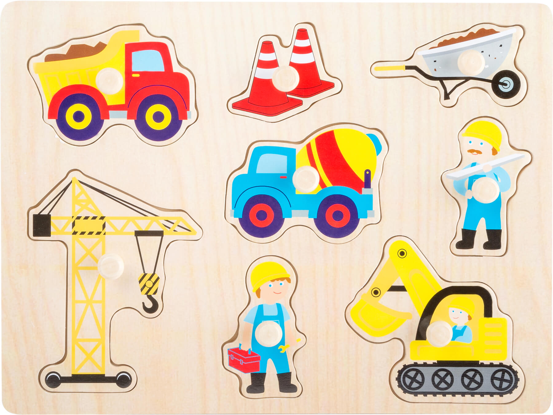 Bienvenue sur le chantier! Les pièces de puzzle à bouton en bois sont faciles à attraper et à placer. Les tout-petits exercent leur motricité fine et leur patience.