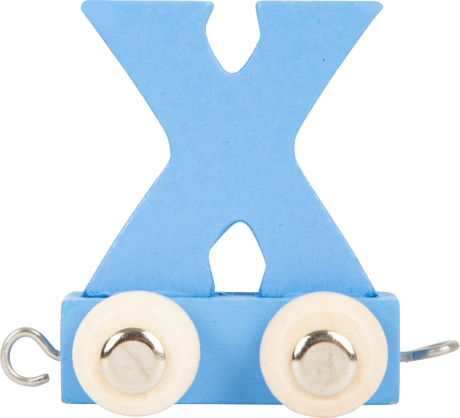 Cette remorque en bois avec la lettre rouge X peut être attelée à chaque train de nom.